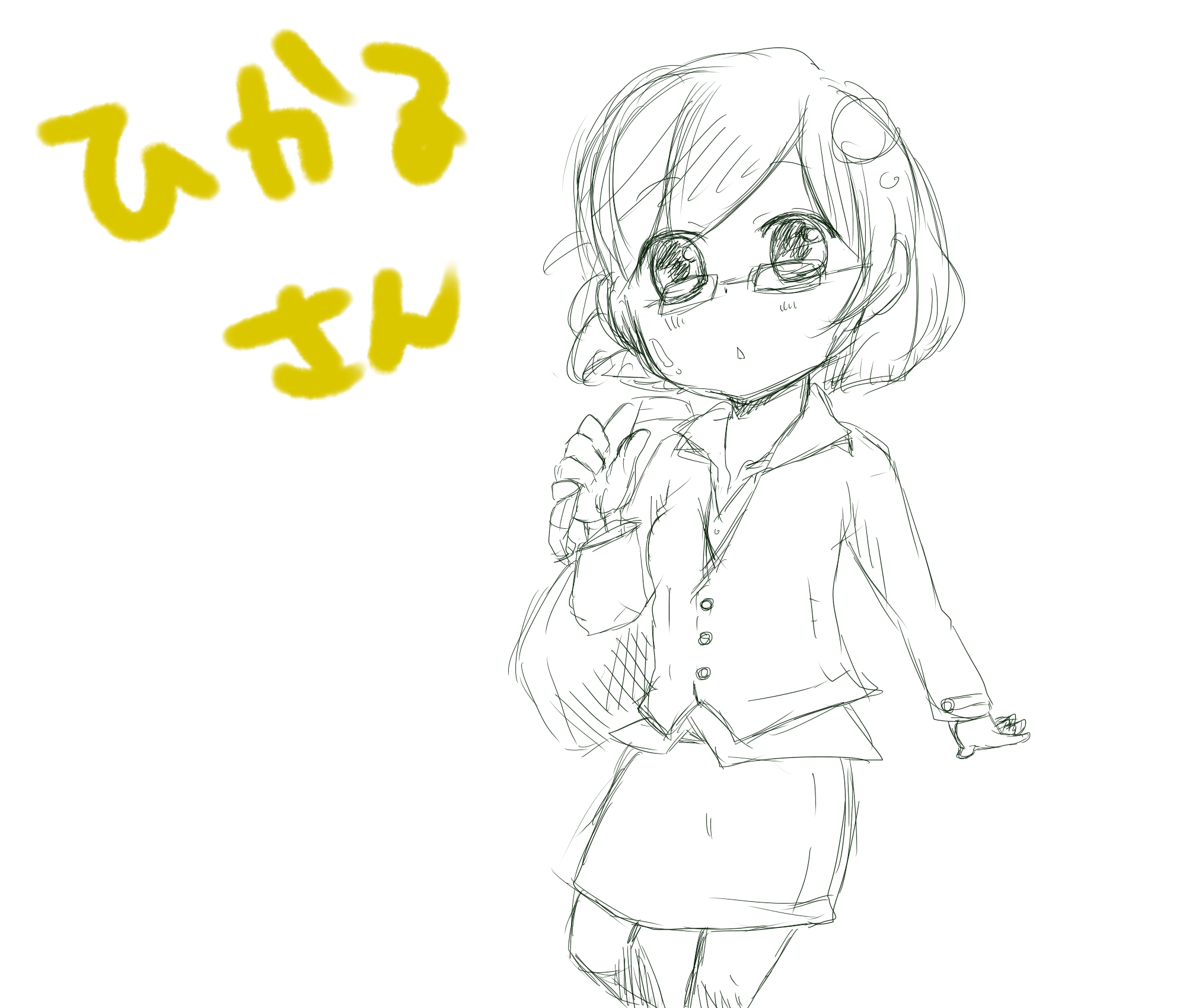放送中にお肌のことについていろいろ教えてもらったのでイメージは「お肌つやつや」なんとなく「OL」さん、そんでOLといったら「スーツ」かなーと。本人からメガネかけてますーってことでメガネも追加してみました。